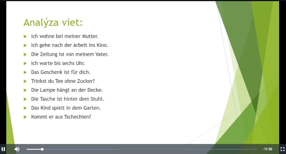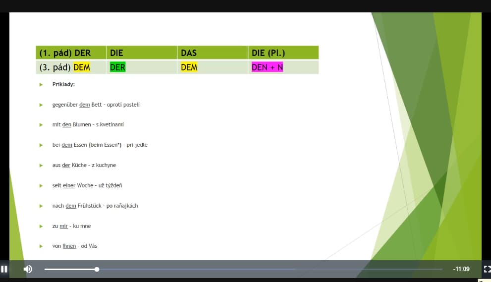 Cieľom online videokurzov je zamerať sa na vybranú jazykovú problematiku, ktorej sa budete venovať z pohodila Vášho domova v čase, ktorý si sami určíte. Jednotlivé videá si budete prechádzať rýchlosťou, ktorá je pre Vás komfortná. Vašou spätnou väzbou správneho pochopenia učiva budú mnou vypracované cvičenia s riešeniami. Pri každom videokurze uvádzam ukážky. Ak by ste potrebovali ďalšie ukážky alebo len chcete zistiť viac ako uvádzam, dajte mi vedieť. Určite sa Vám v krátkom čase ozvem...
