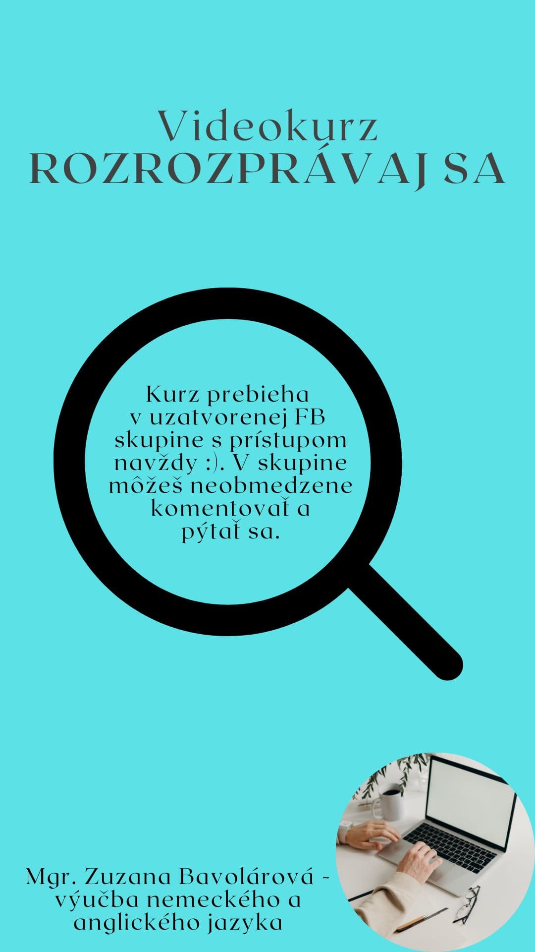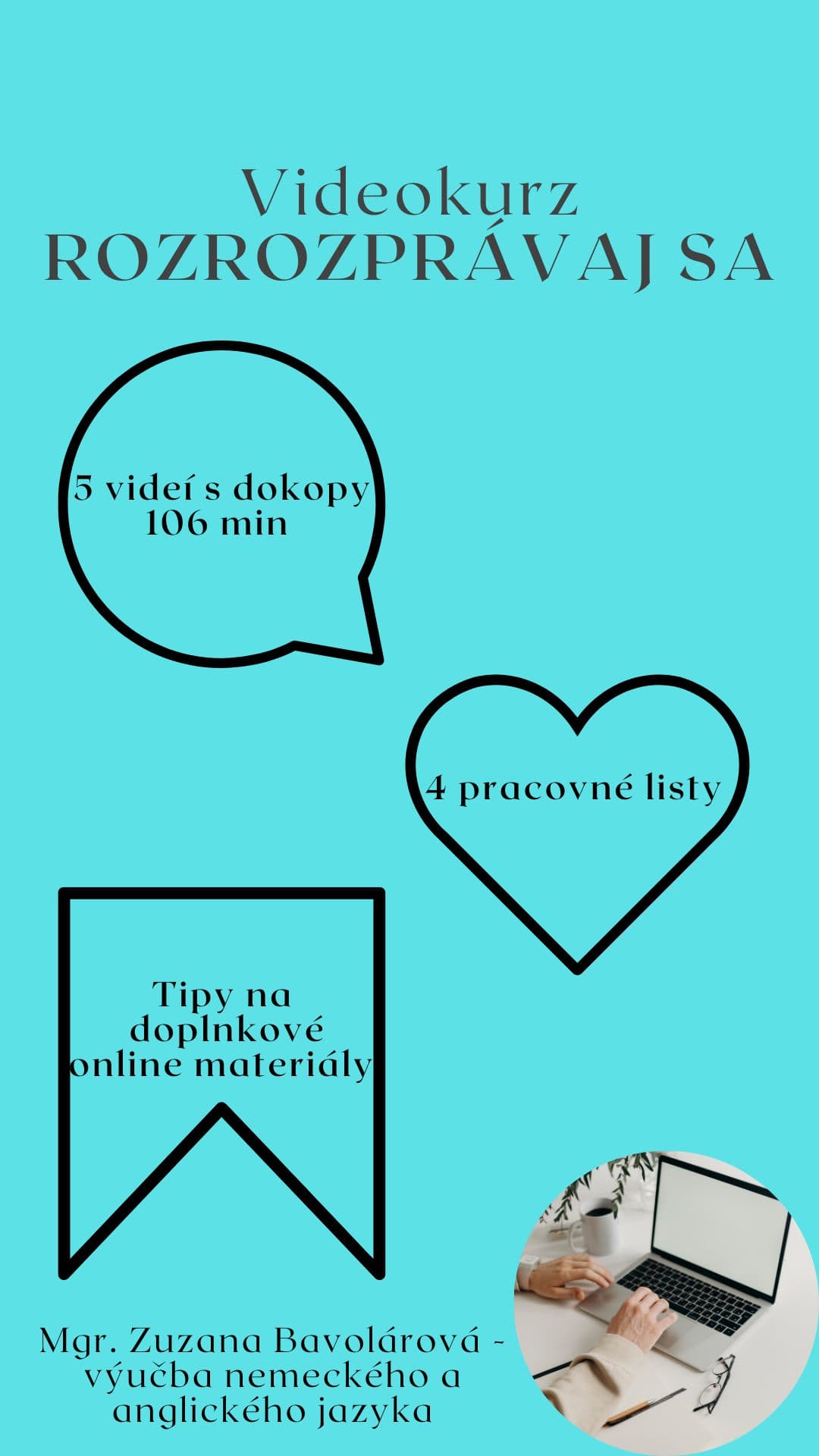 Videokurz Rozrozprávaj sa predstavuje obsahovo nasýtený materiál, ktorý vychádza z potrieb praxe. Podkladom pre jeho vznik boli nielen teoretické vedomosti, ale predovšetkým praktické typy z mojich hodín angličtiny a nemčiny. Jednoducho povedané - v kurze prezentujem to, čo pomohlo už desiatkam mojich študentov a teraz môže pomôcť aj Vám v lepšom nácviku rozprávania v rôznych situáciách a s rôznymi komunikačnými partnermi.