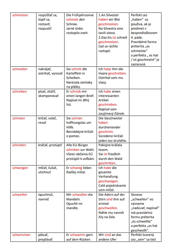 Tento unikátny súbor (30 strán) obsahuje nepravidelné slovesá uvedené v príručke s názvom "Deutsche Grammatik" od autorov G. Helbig a J. Buscha z roku 2001, str. 36-40. Každému slovesu som venovala maximálnu pozornosť s cieľom ponúknuť študentom viac ako je možné nájsť v prehľadoch nepravidelných slovies zväčša niekde na konci učebnice alebo slovníka... Informácie k slovesám som čerpala z elektronických slovníkov Lingea: https://slovniky.lingea.sk/nemecko-slovensky; Duden: https://www.duden.de/ a DWDS: https://www.dwds.de/.